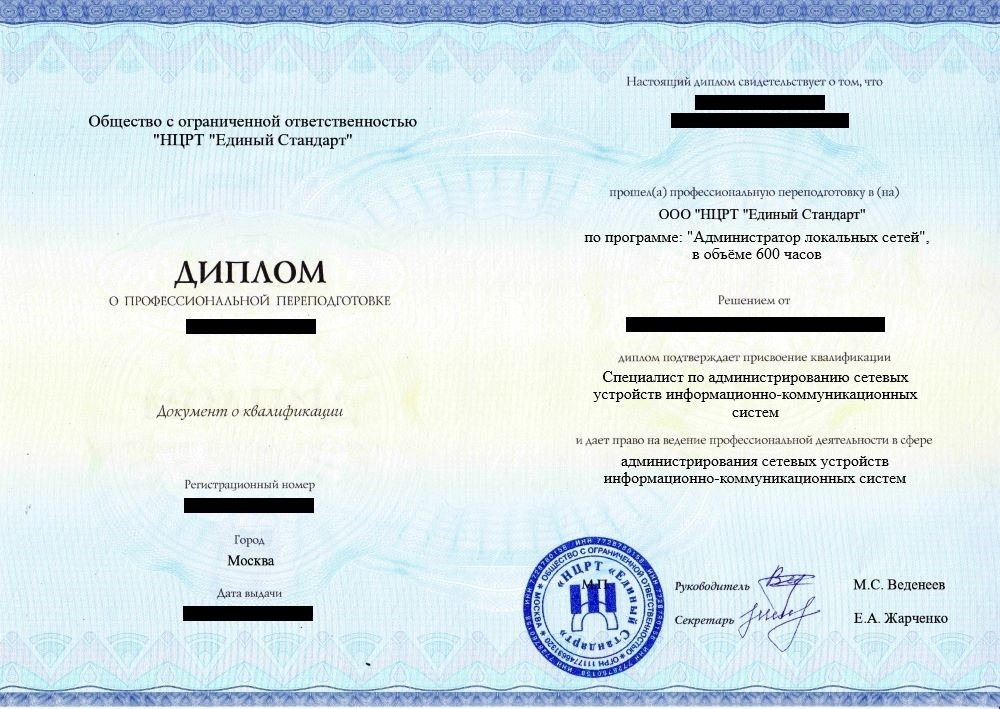 - Диплом о профессиональной переподготовке установленного государством образца. Срок действия: бессрочно