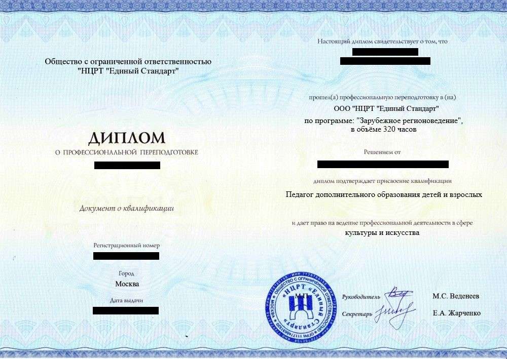 - Диплом о профессиональной переподготовке установленного государством образца. Срок действия: бессрочно